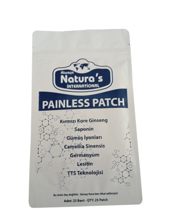 Always Natura's Painless Patch, içeriğindeki antik otlar, mineraller ve elementlerin oluşturduğu bileşimle kas ve dokularda enerji oluşturarak vücut direncini arttırır. Kırmızı kore ginsengi (Panax Ginseng), glukozamin, gümüş iyonları, saponinler, kalsiyum, magnezyum, potasyum ve germanyum bileşenlerinden oluşan Always Natura's Painless Patch enjeksiyon yönteminden sonra en etkili yöntem olan “Transdermal Dalga Teknolojisini” kullanarak içeriğindeki etken maddelerin vücudumuzun ihtiyacı olduğu kadarının kılcal damarlar vasıtasıyla emilimini sağlayarak, merkezi sinir sistemimizin daha güçlü bir hale gelmesini sağlar. Böylece vücudumuzun kendi kendini tedavi etmesini sağlayarak daha sağlıklı ve daha zinde bir yaşamın kapılarını aralar. Kullanmaya başladıktan sonra bedeninizdeki değişimi hissedecek, sıkıntılarınıza son vererek daha sağlıklı ve zinde bir yaşama adım atmış olmanın mutluluğunu yaşayacaksınız.